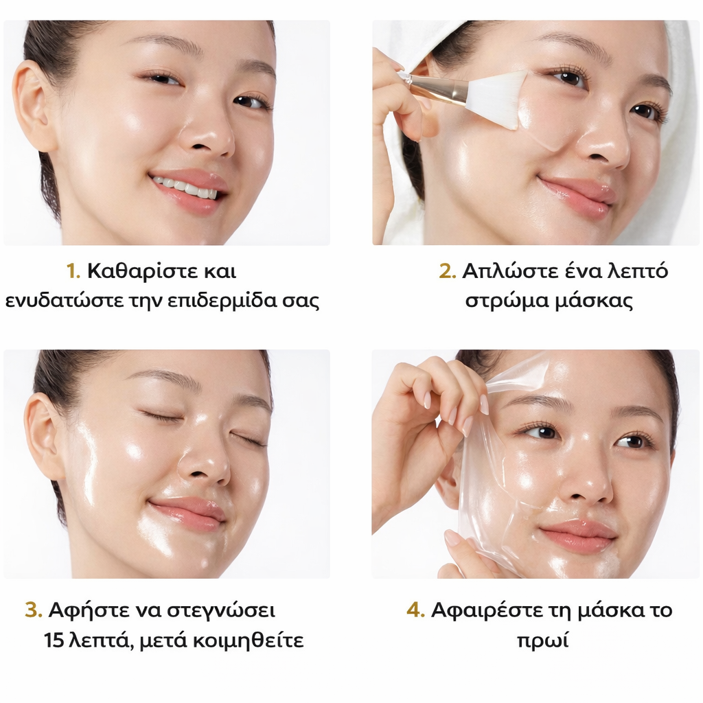 Για βέλτιστα αποτελέσματα, συνιστάται να εντάξετε τη μάσκα με κολλαγόνο στη νυχτερινή σας ρουτίνα περιποίησης, 1 έως 2 φορές την εβδομάδα.